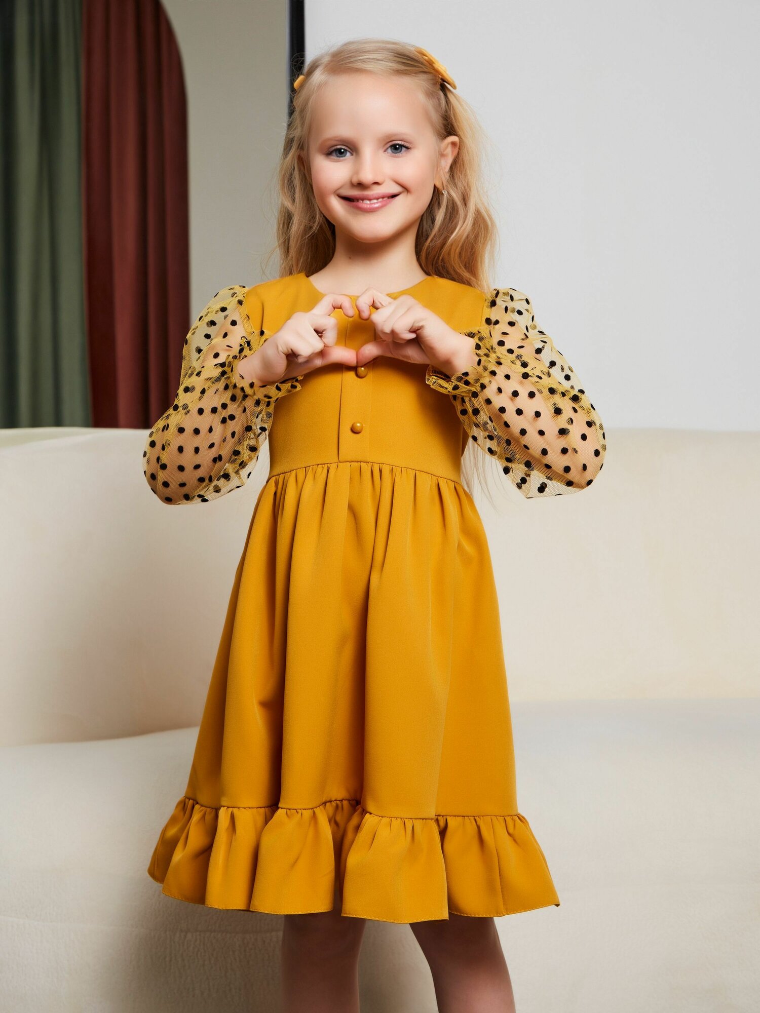 Школьное платье Sofisha kids Зима - весна 2025, размер 30, желтый/горчичный 2 300 ₽