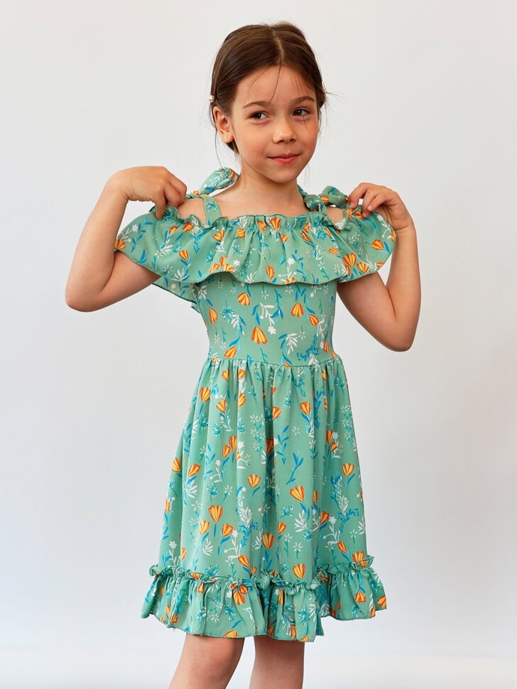 Платье Бушон Лето, размер 122-128, зеленый информация: