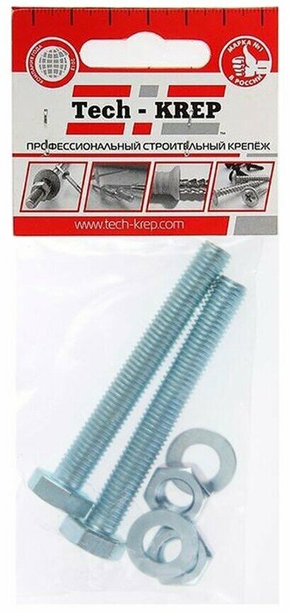 Tech-Krep Болт DIN933 с шестигранной головкой оцинк. М12x100 2 шт - пакет 126524