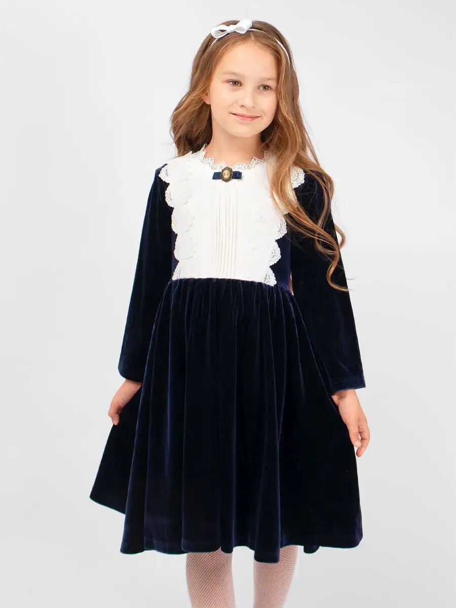10 цен на Школьное платье Соль&Перец нарядное бархатное для утренников и выступлений на Новый год, размер 128, темно-синий