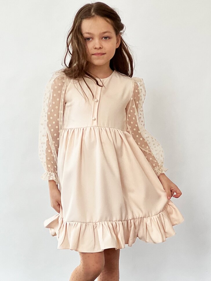Платье Бушон Праздник, размер 134-140, бежевый информация: