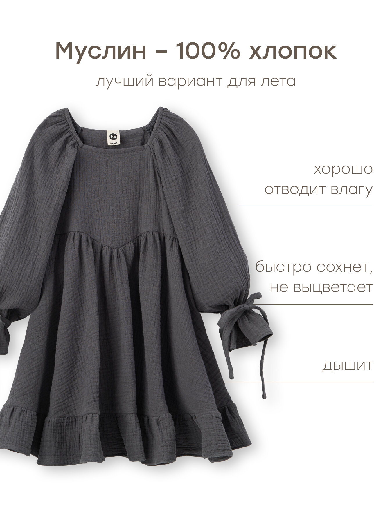 Платье Happy Baby Весна-лето 2025, размер 92-98, темно-серый 4 493 ₽
