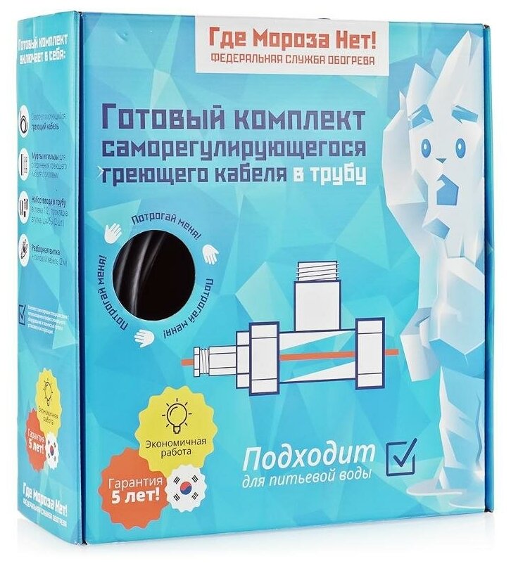 Кабель греющий для труб Где Мороза Нет! 240 Вт 15 м в трубу информация: