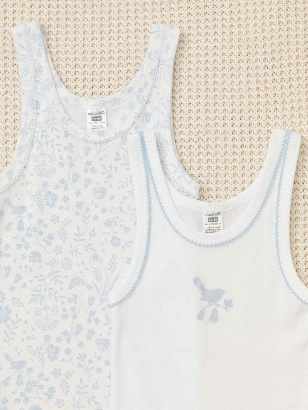 Майка crockid К 1181-2уп/белый,волшебный сад, комплект из 2 шт., размер 56-60/110-116, белый 856 ₽