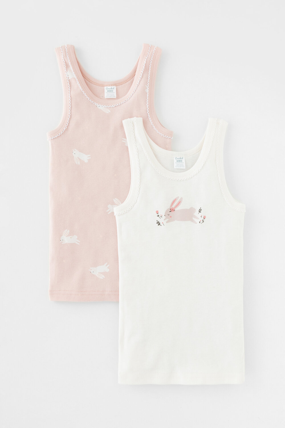 Майка crockid К 1181-2уп/белая лилия,пыльный персик,зайчики Ал, комплект из 2 шт., размер 52/86-92, белый, розовый информация: