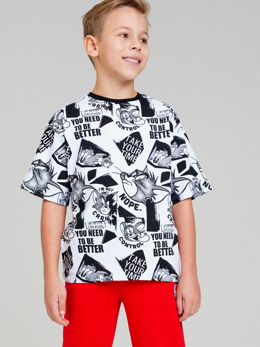 10 цен на Футболка playToday Весна-лето 2025, размер 128, белый/черный