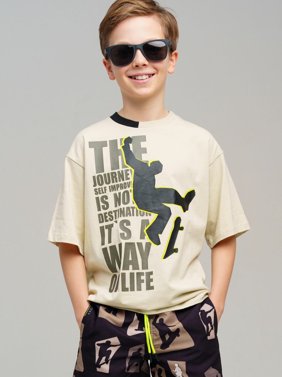 Футболка playToday Весна-лето 2025, размер 164, бежевый/черный информация: