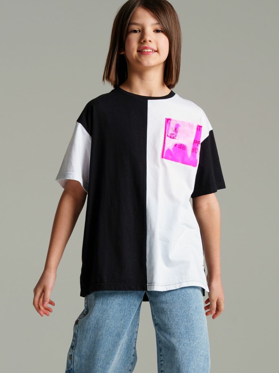 Футболка playToday Весна-лето 2025, размер 140, черный/белый/розовый информация: