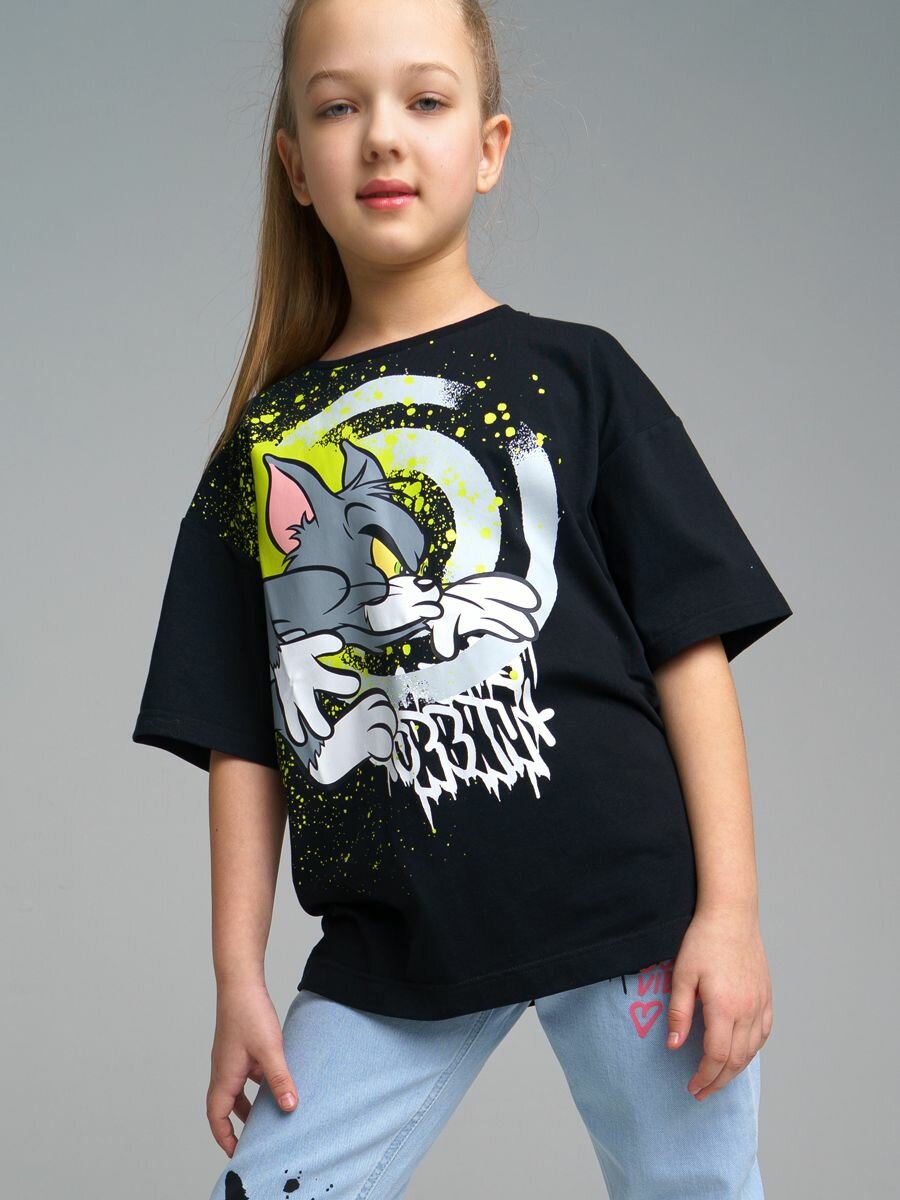 Футболка playToday Весна-лето 2025, размер 158, черный/розовый 971 ₽