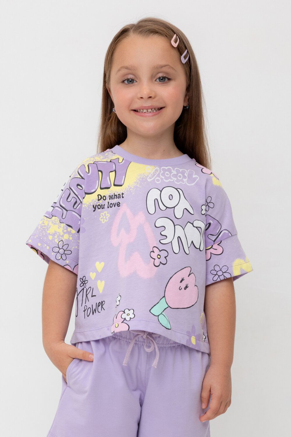 Футболка crockid КР 302695-1/пастельно-лиловый,позитив к541, размер 64/128, фиолетовый 973 ₽