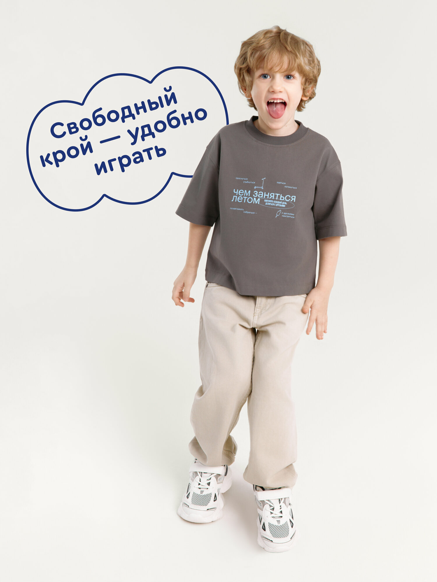 Футболка Junion Oversize с принтом, размер 98, серый 658 ₽