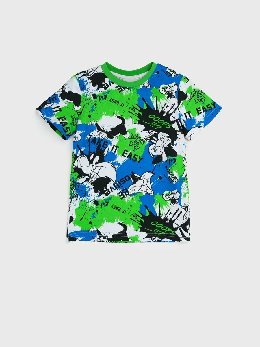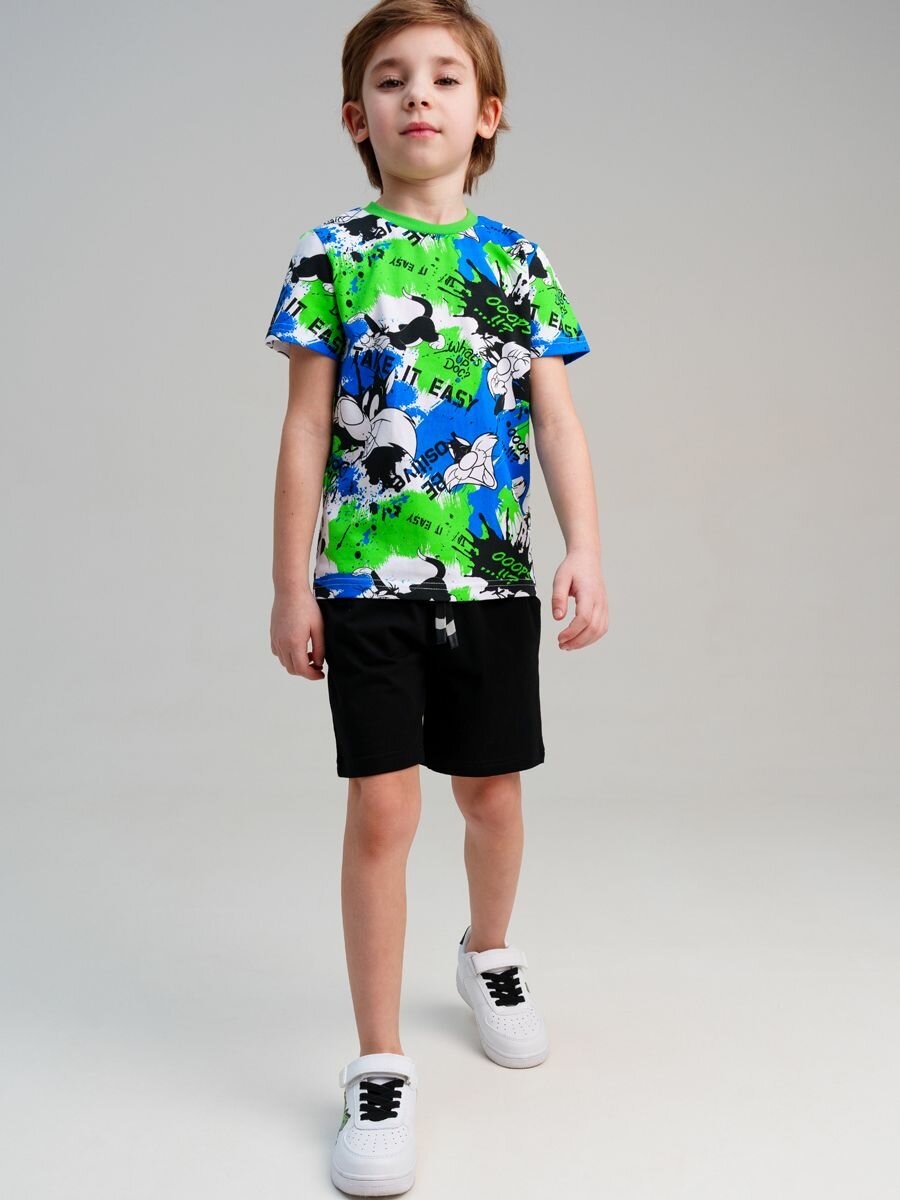 10 цен на Футболка playToday Весна-лето 2025, размер 104, белый/синий/зеленый