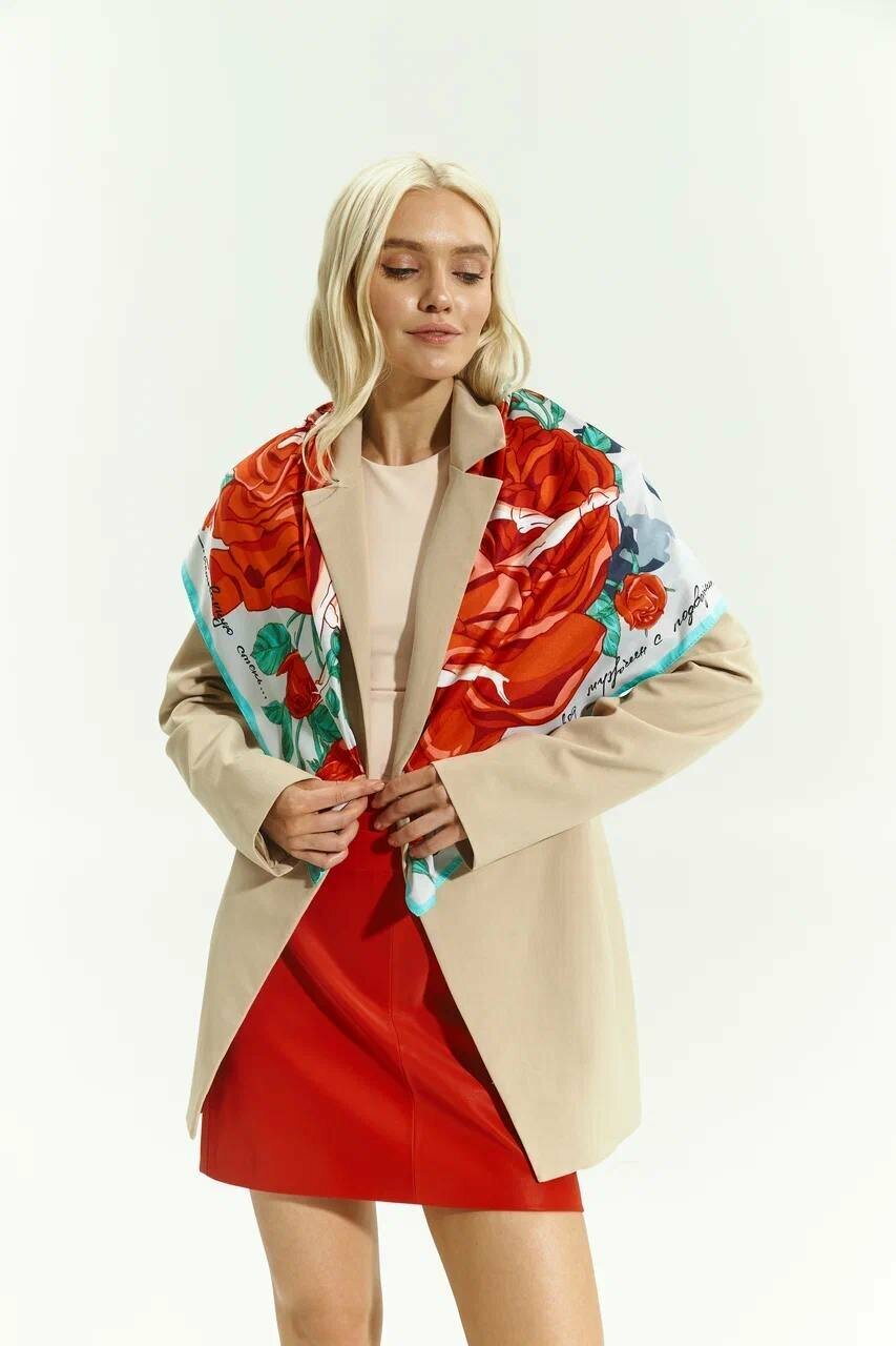 Платок Русские в моде by Nina Ruchkina для женщин,90х90 см, белый/красный/зеленый информация: