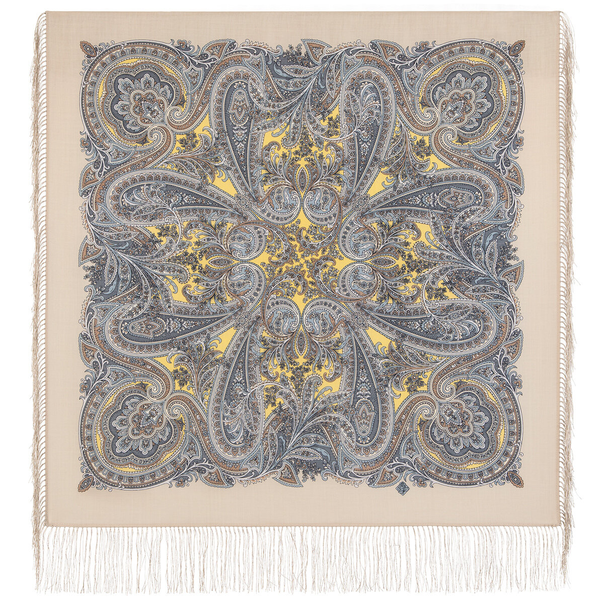 Платок Павловопосадская платочная мануфактура для женщин,89х89 см, бежевый/серый/желтый информация: