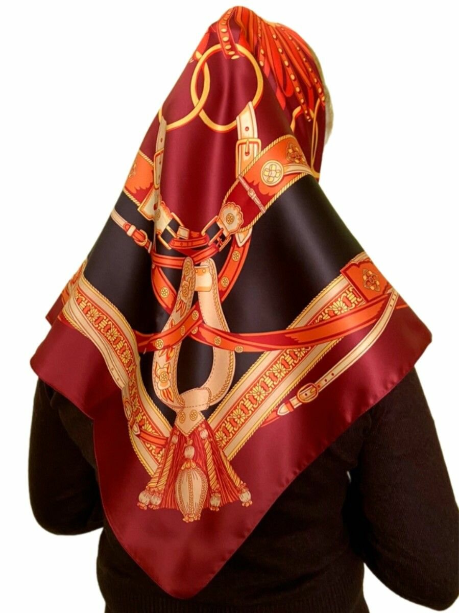 Платок VENERA для женщин,90х90 см, черный, оранжевый, желтый, коричневый, бордовый информация: