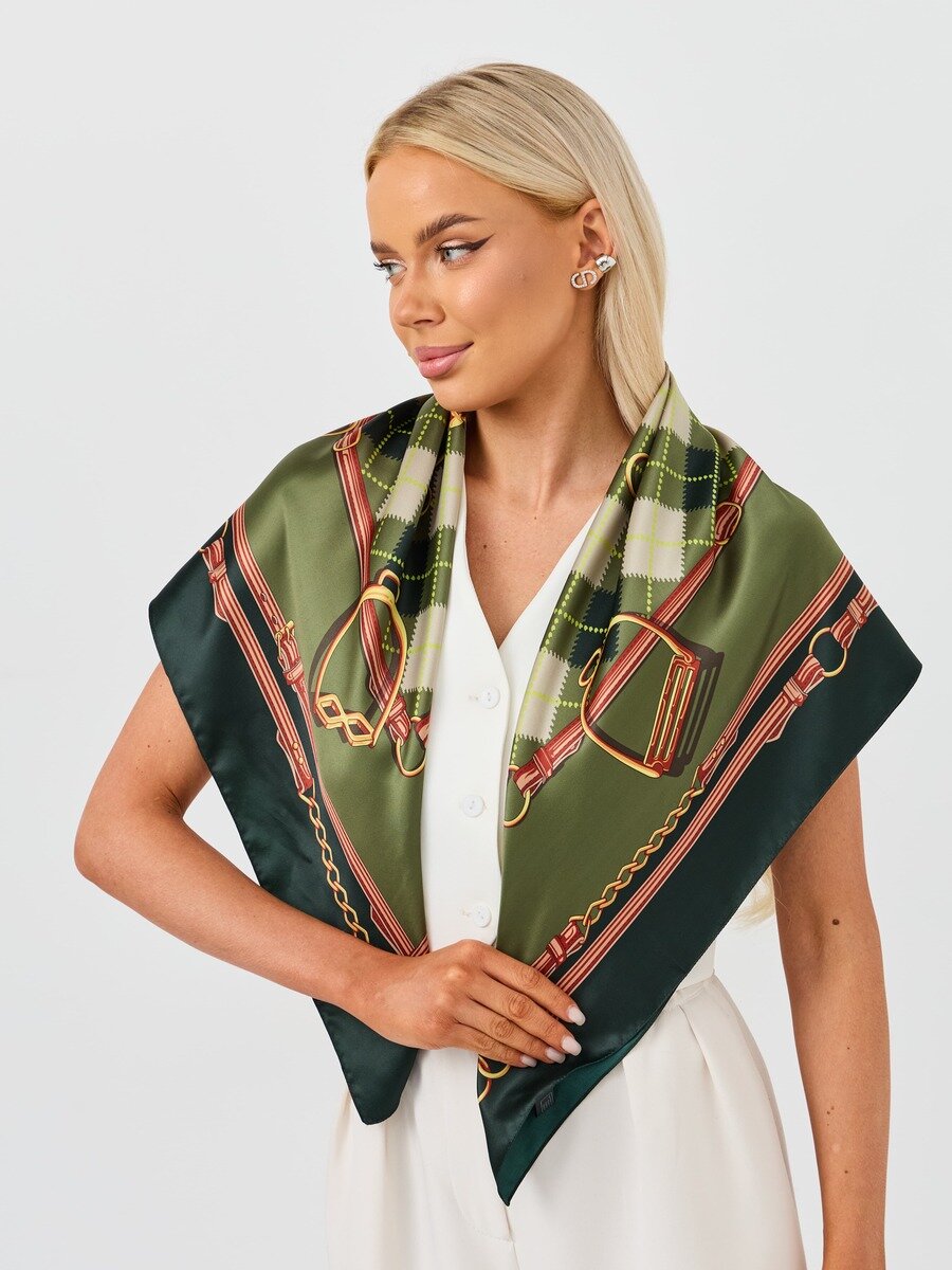 Платок VENERA для женщин,90х90 см, зеленый/коричневый 2 117 ₽