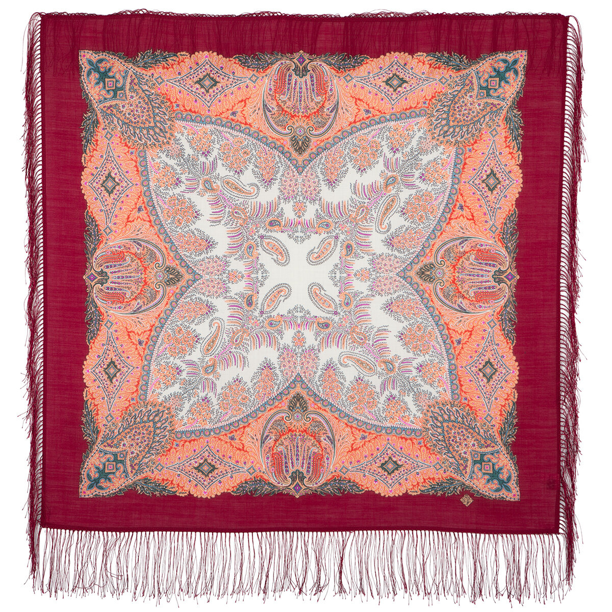 10 цен на Платок Павловопосадская платочная мануфактура для женщин,89х89 см, бордовый, красный, оранжевый, серебряный