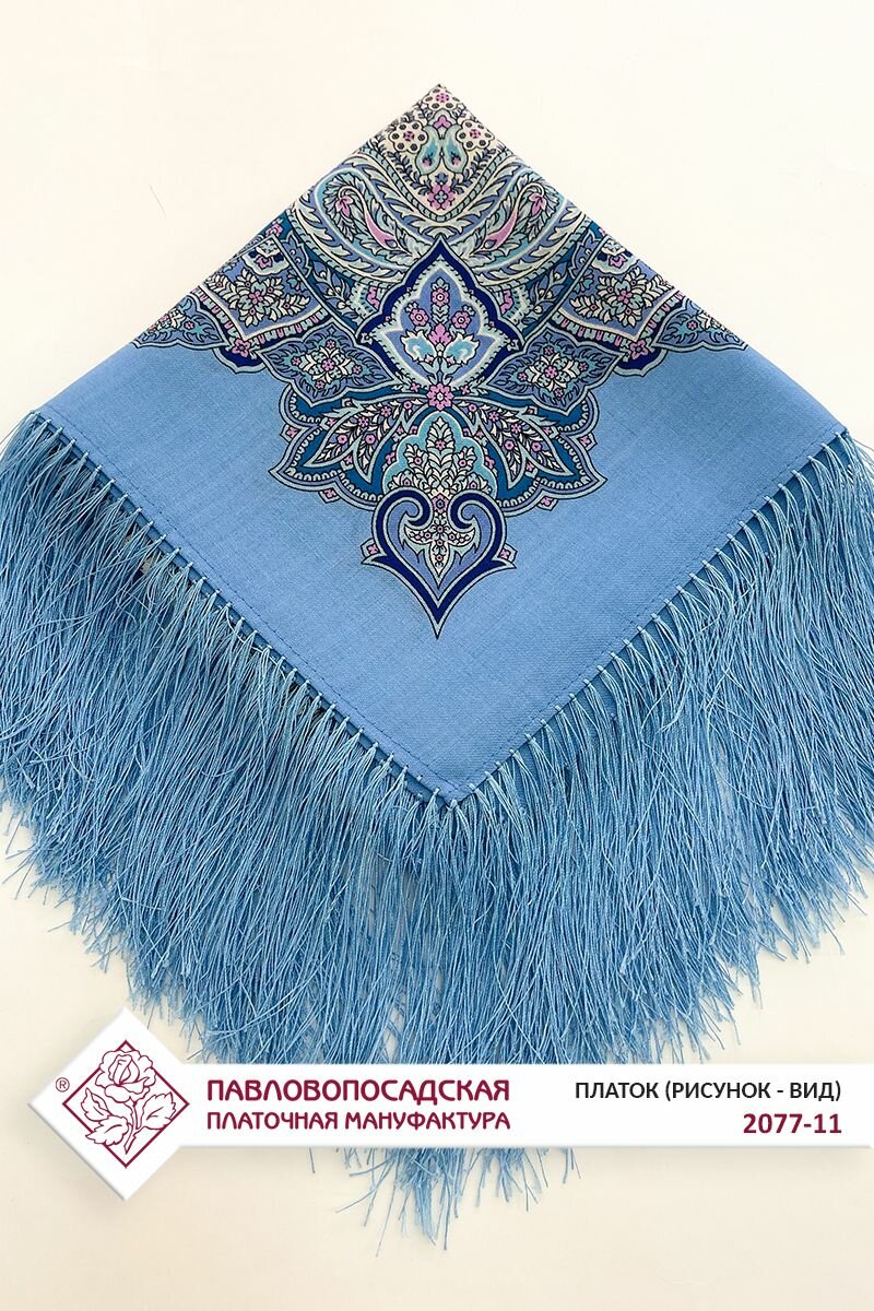 10 цен на Платок Павловопосадская платочная мануфактура для женщин,89х89 см, голубой/белый