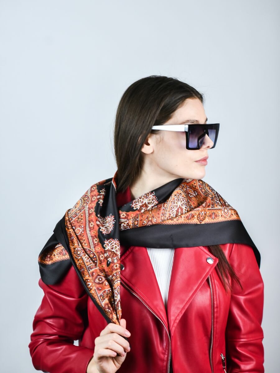 Платок VENERA для женщин,90х90 см, белый, коричневый, оранжевый, красный информация: