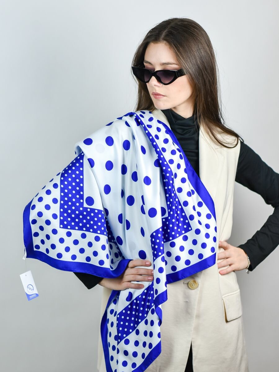 10 цен на Платок VENERA для женщин,90х90 см, синий/белый