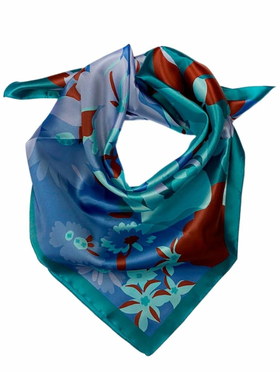 Платок VENERA для женщин,90х90 см, бордовый, голубой, бирюзовый информация:
