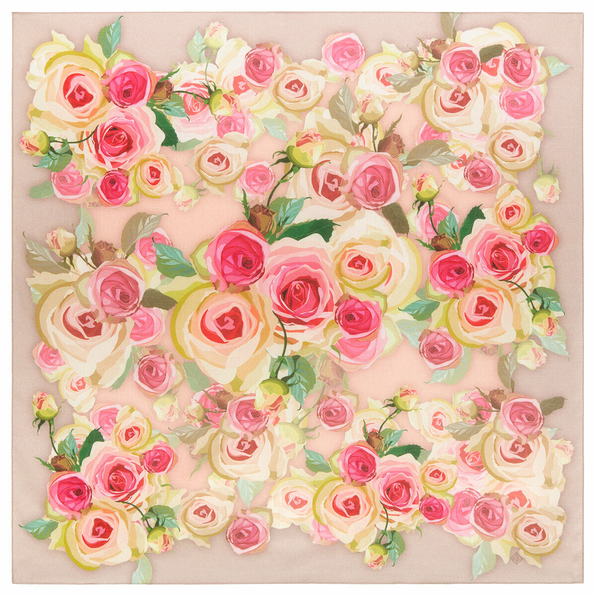 Отзывы на Платок Павловопосадская платочная мануфактура для женщин,76х76 см, бежевый/розовый/зеленый