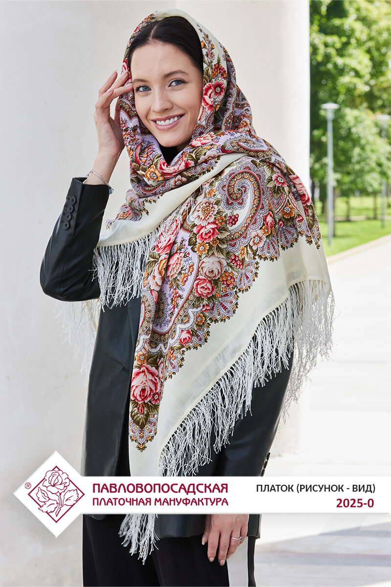 Отзывы на Платок Павловопосадская платочная мануфактура для женщин,125х125 см, бежевый