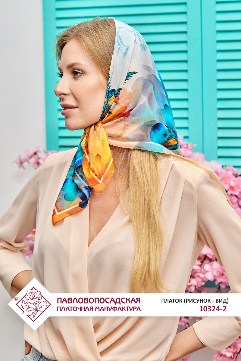 10 цен на Платок Павловопосадская платочная мануфактура для женщин,65х65 см, голубой, оранжевый