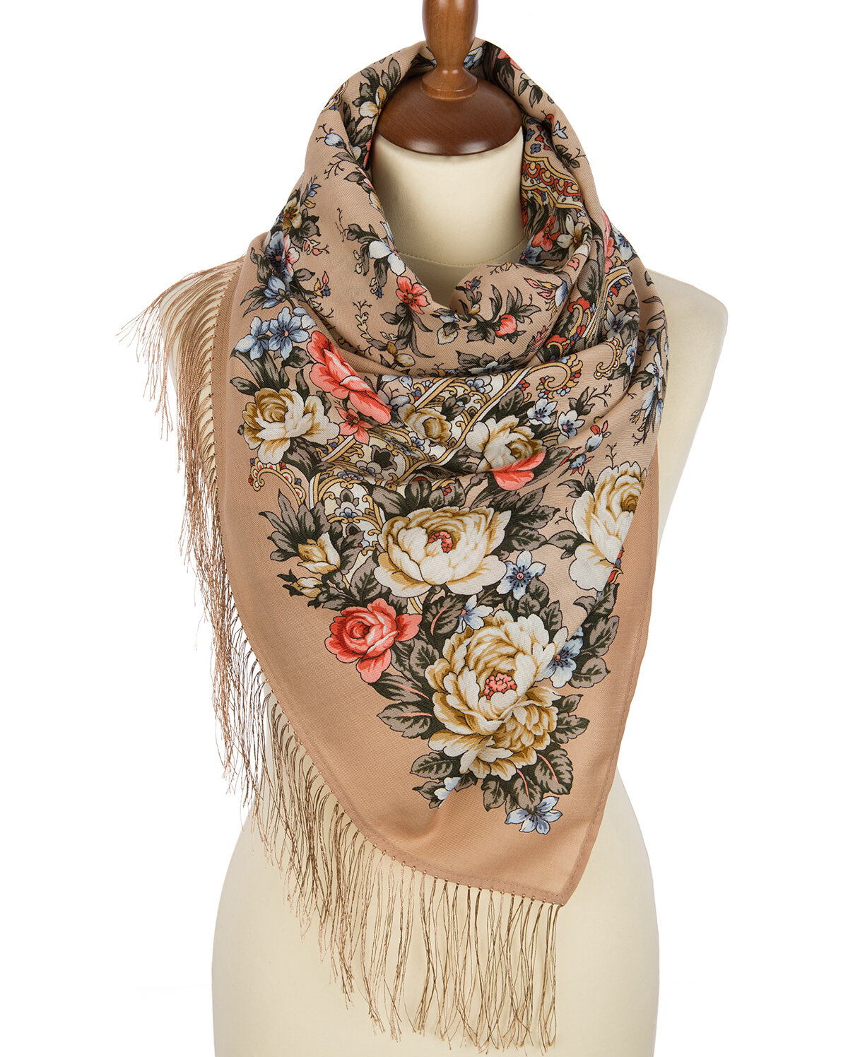 10 цен на Шарф Павловопосадская платочная мануфактура для женщин,150х60 см, one size, бежевый