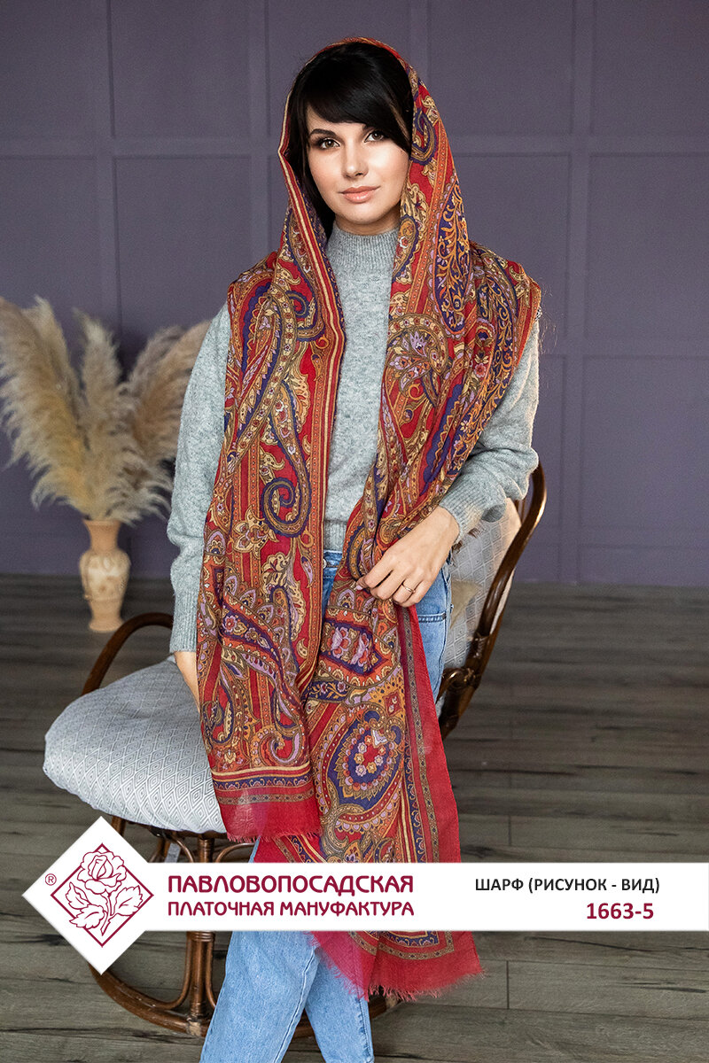 Характиристики этого товара не найдены!Отзывы на Палантин Павловопосадская платочная мануфактура для женщин,230х80 см, красный/синий/бежевый