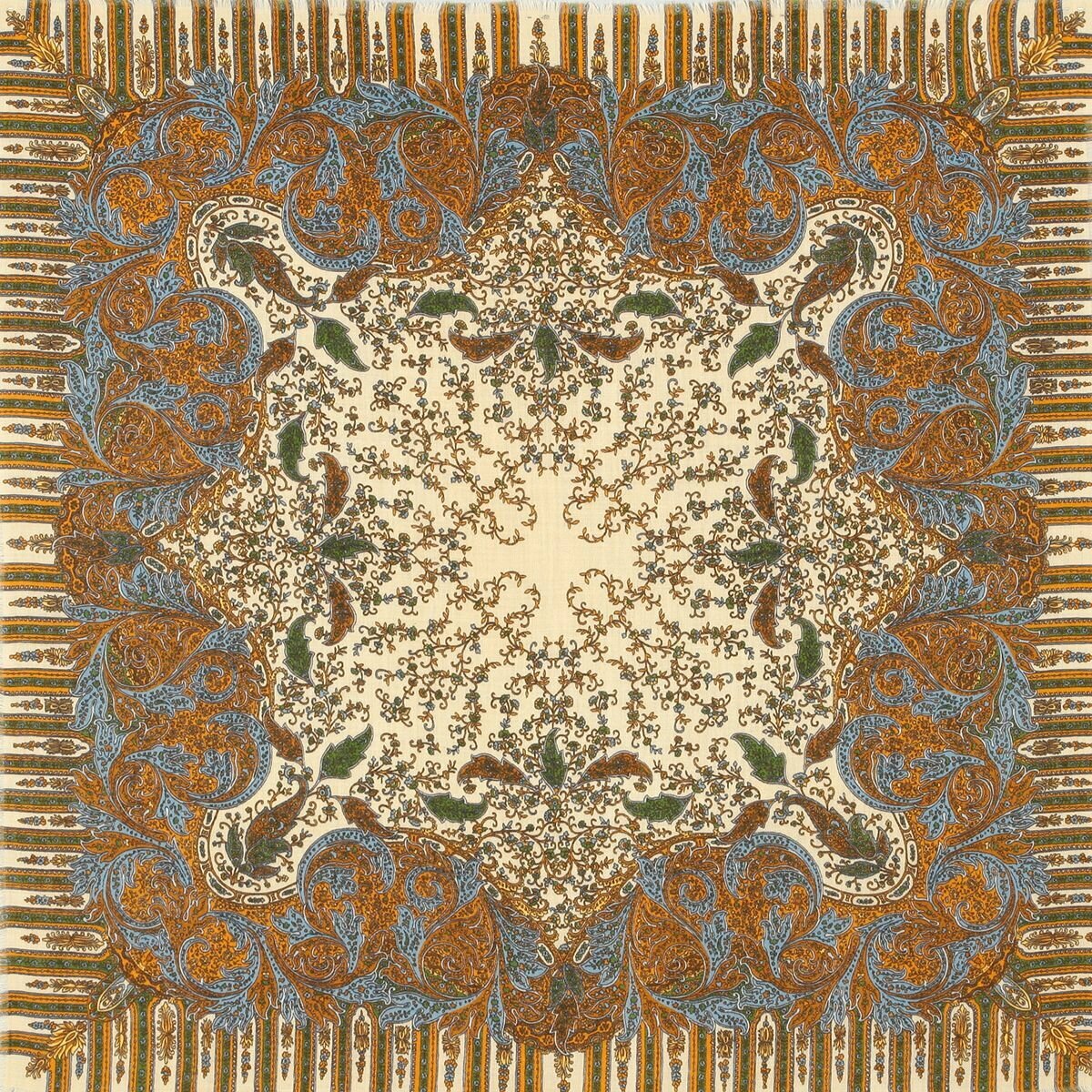 Платок Павловопосадская платочная мануфактура для женщин,89х89 см, бежевый, коричневый, голубой, зеленый, оранжевый информация:
