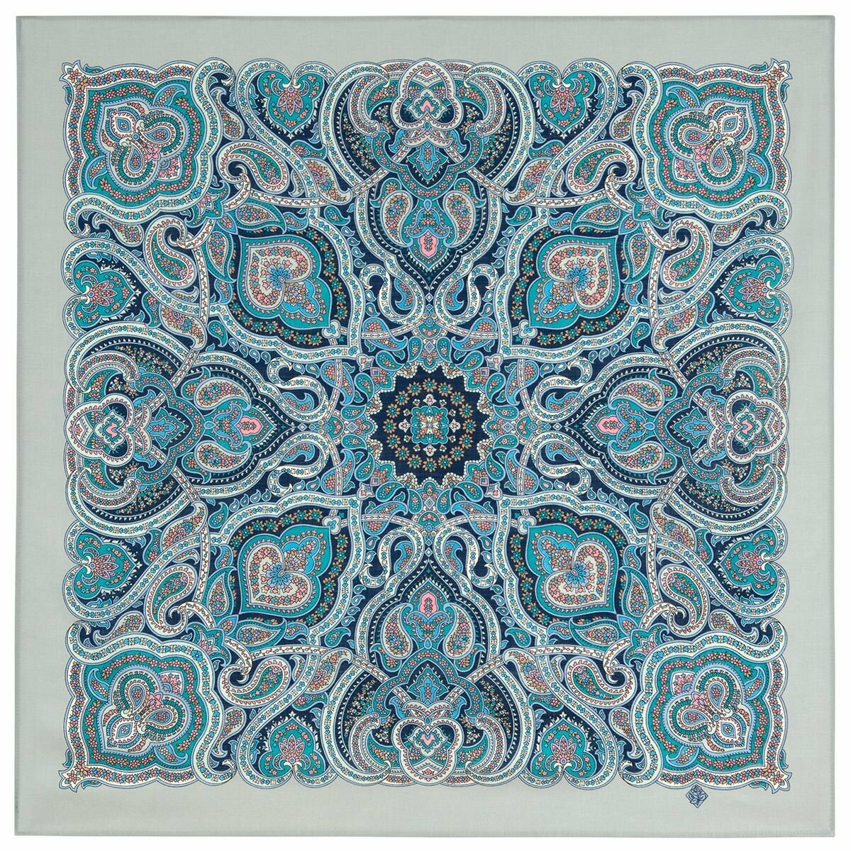 Платок Павловопосадская платочная мануфактура для женщин,89х89 см, серый/голубой информация: