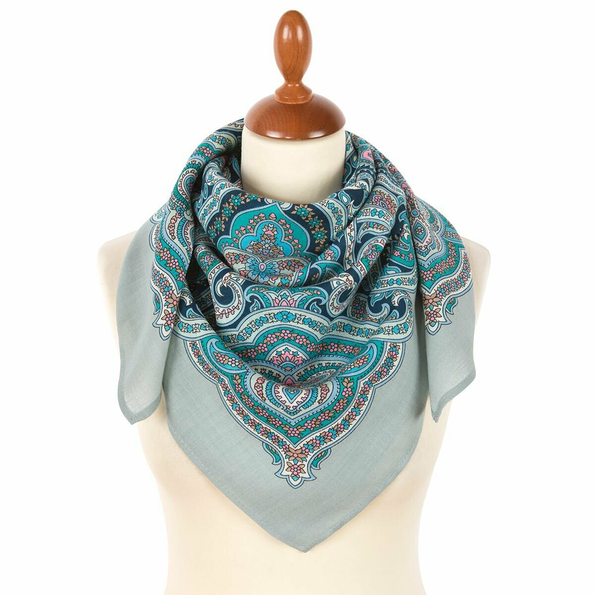 Отзывы на Платок Павловопосадская платочная мануфактура для женщин,89х89 см, серый/голубой