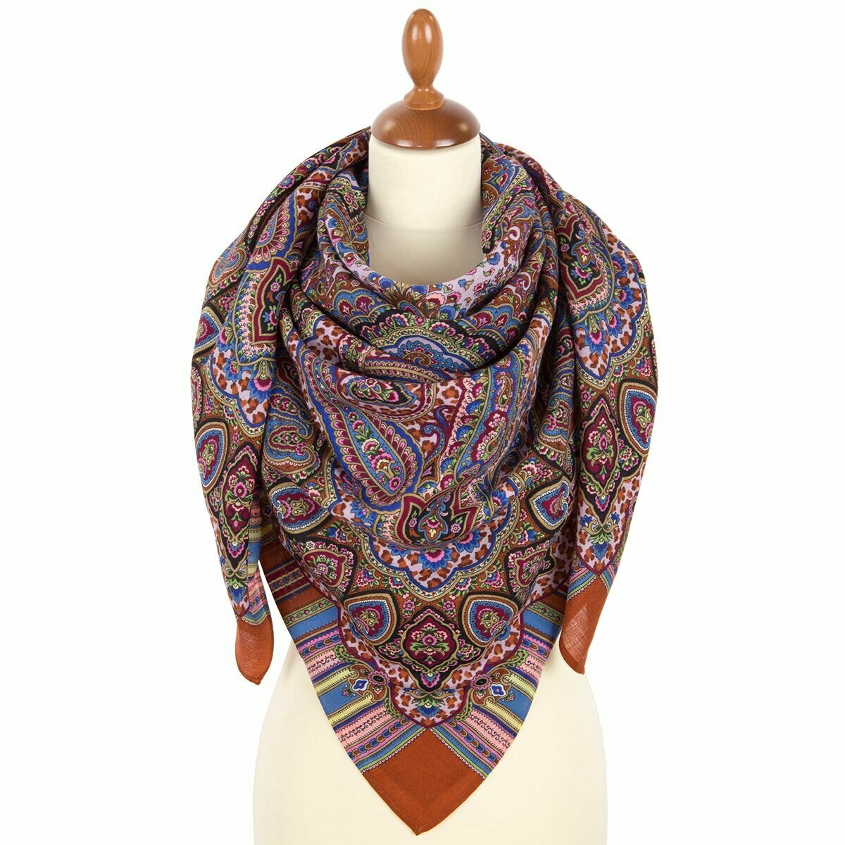 Отзывы на Платок Павловопосадская платочная мануфактура для женщин,125х125 см, коричневый, голубой