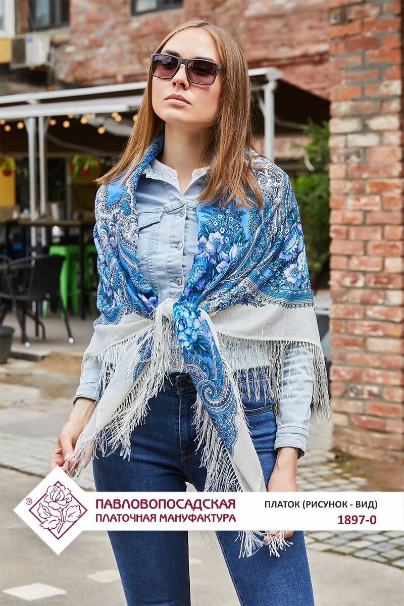 Отзывы на Платок Павловопосадская платочная мануфактура для женщин,125х125 см, белый/голубой