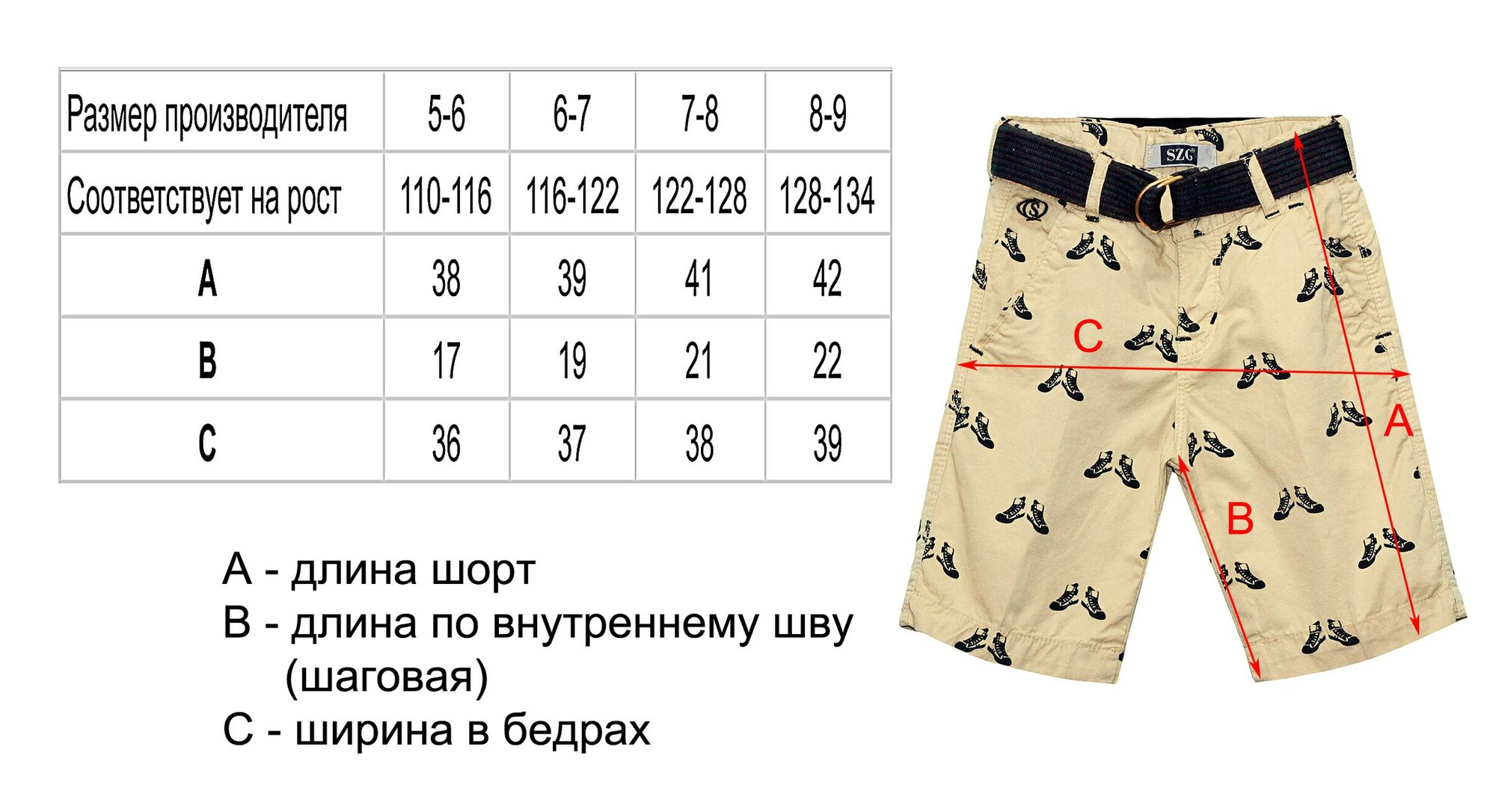 10 цен на Шорты SZG текстильные шорты с ремнем, размер 5-6, бежевый