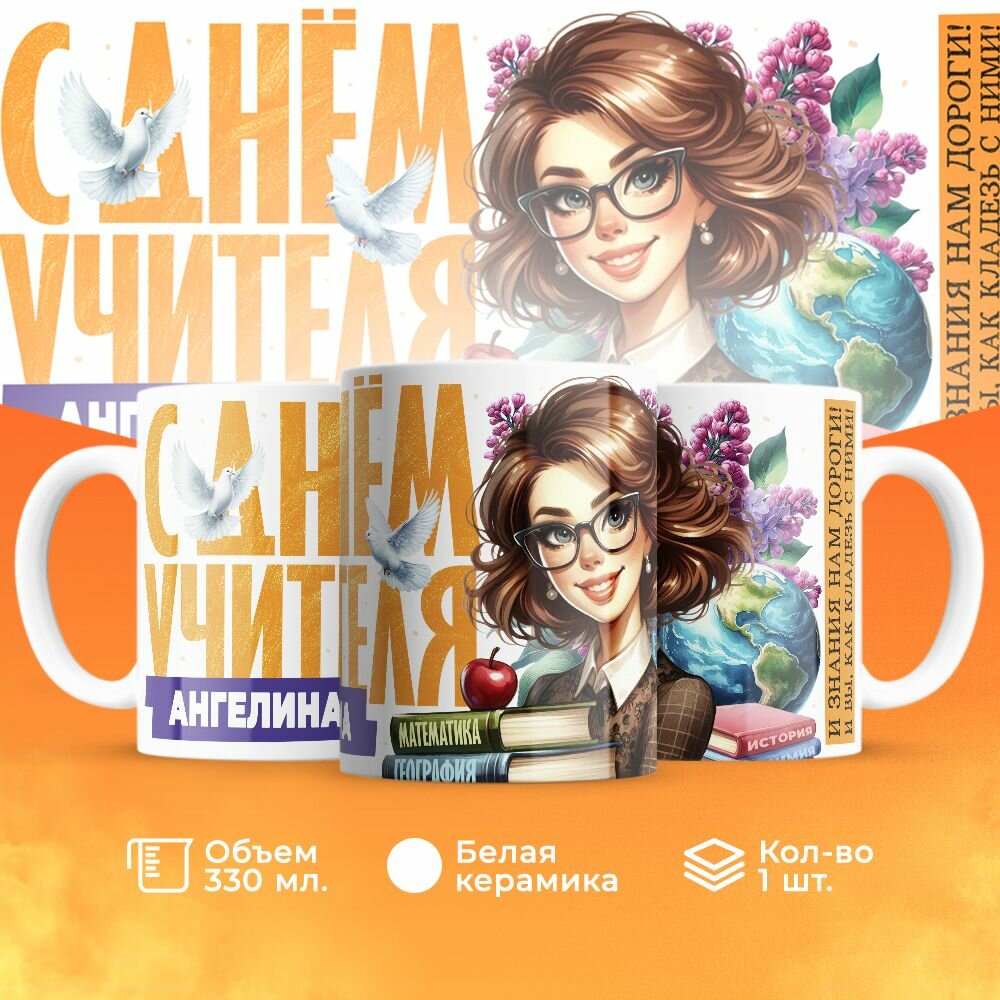 Кружка, "Ангелина с Днём учителя", на день учителя, в подарок классному руководителю, преподавателю или коллеги 330 мл информация:
