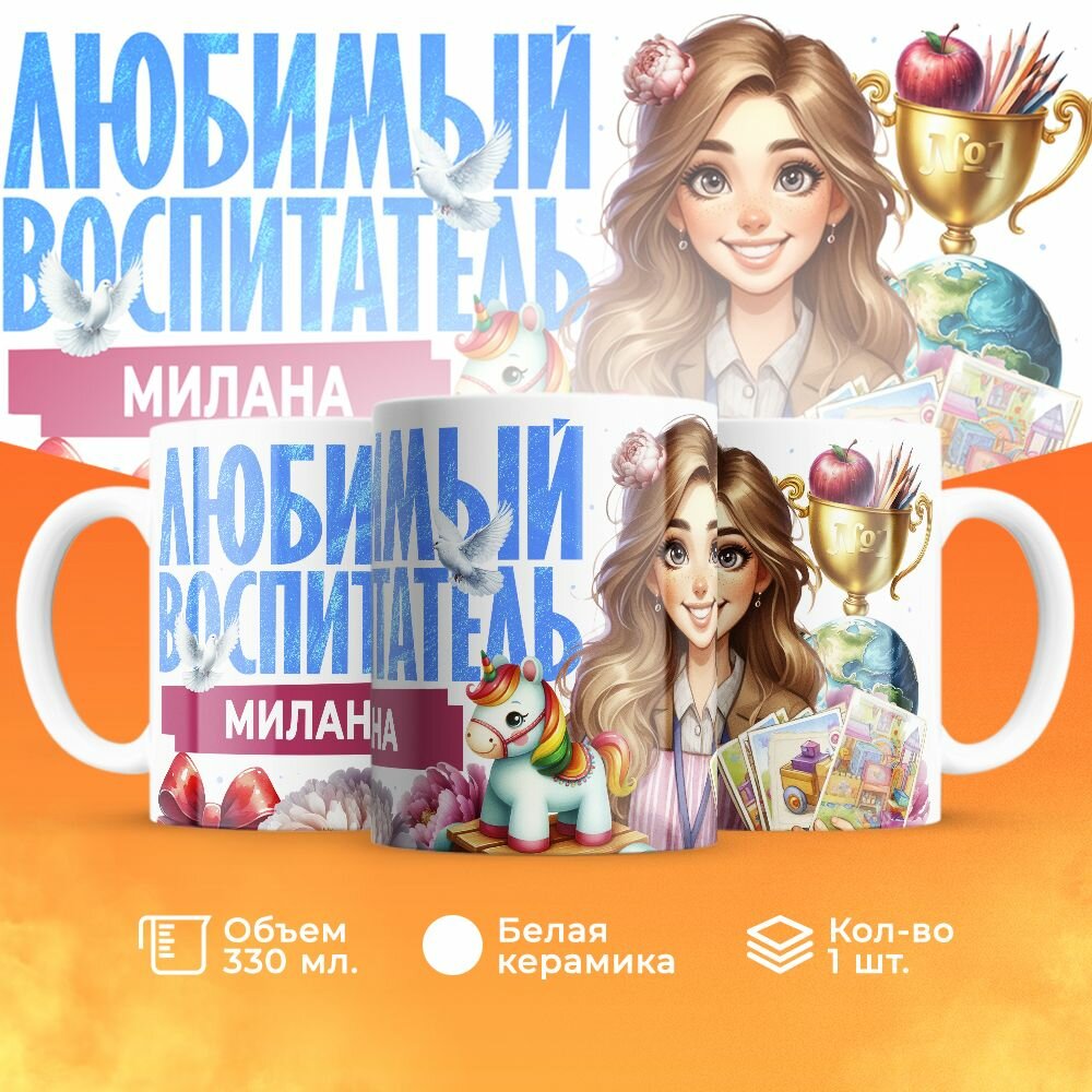 Кружка, "Милана любимый воспитатель", на день воспитателя, в подарок в детский сад, работнику яслей или коллеги 330 мл информация:
