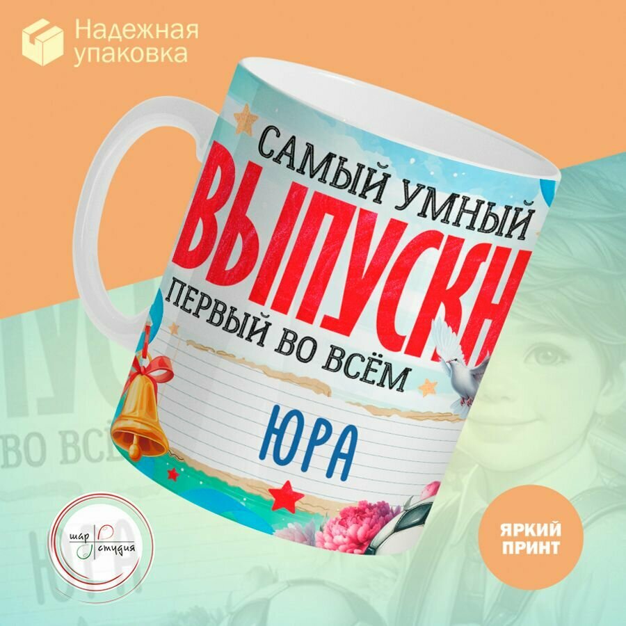 Кружка, "Самый умный выпускник первый во всем Юра", на выпускной из школы, в подарок для мальчика, сына, внука 330 мл информация: