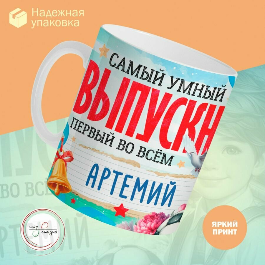 10 цен на Кружка, "Самый умный выпускник первый во всем Артемий", на выпускной из школы, в подарок для мальчика, сына, внука 330 мл