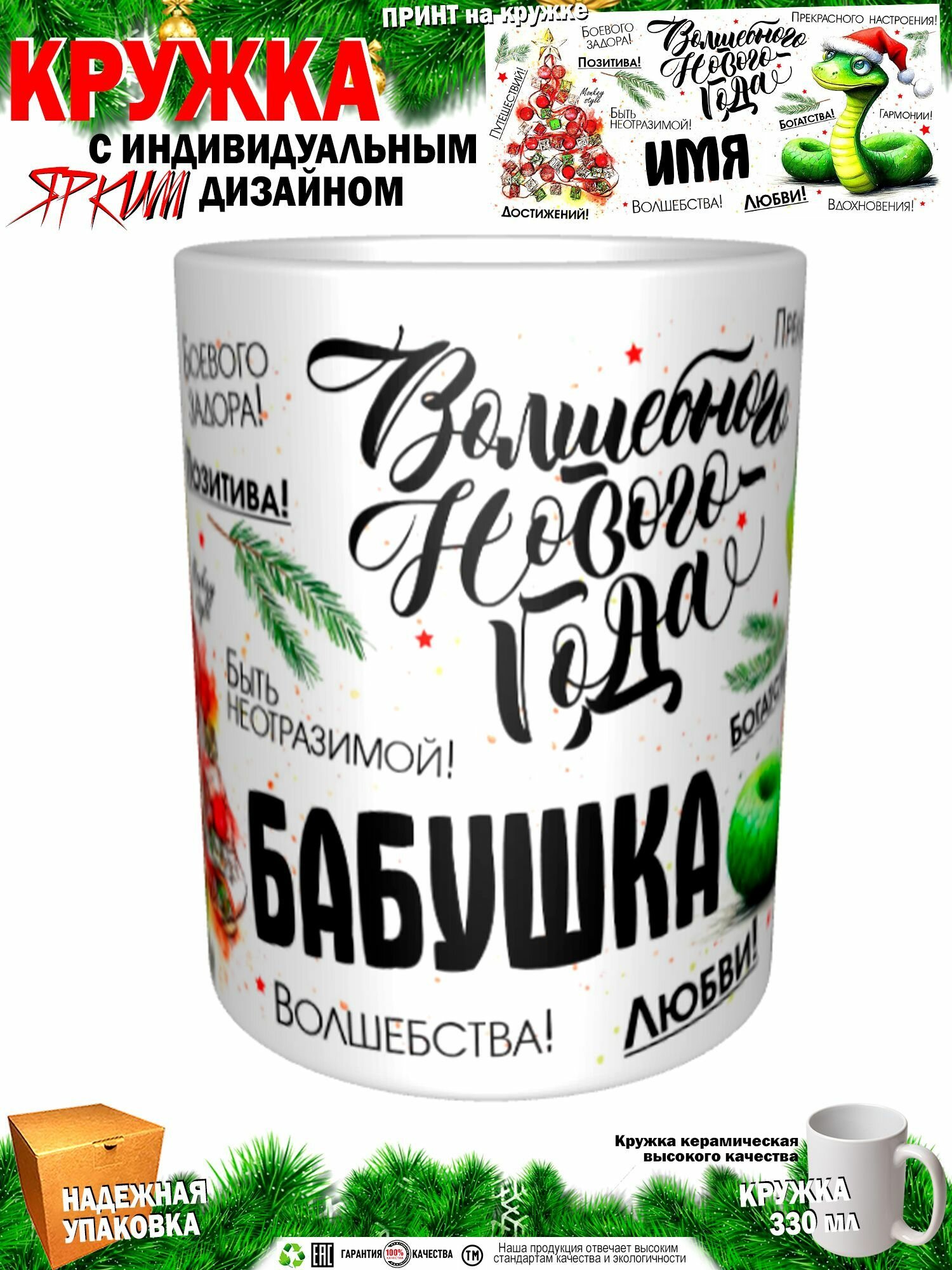 Кружка. Бабушка. Волшебного Нового года. Змея информация: