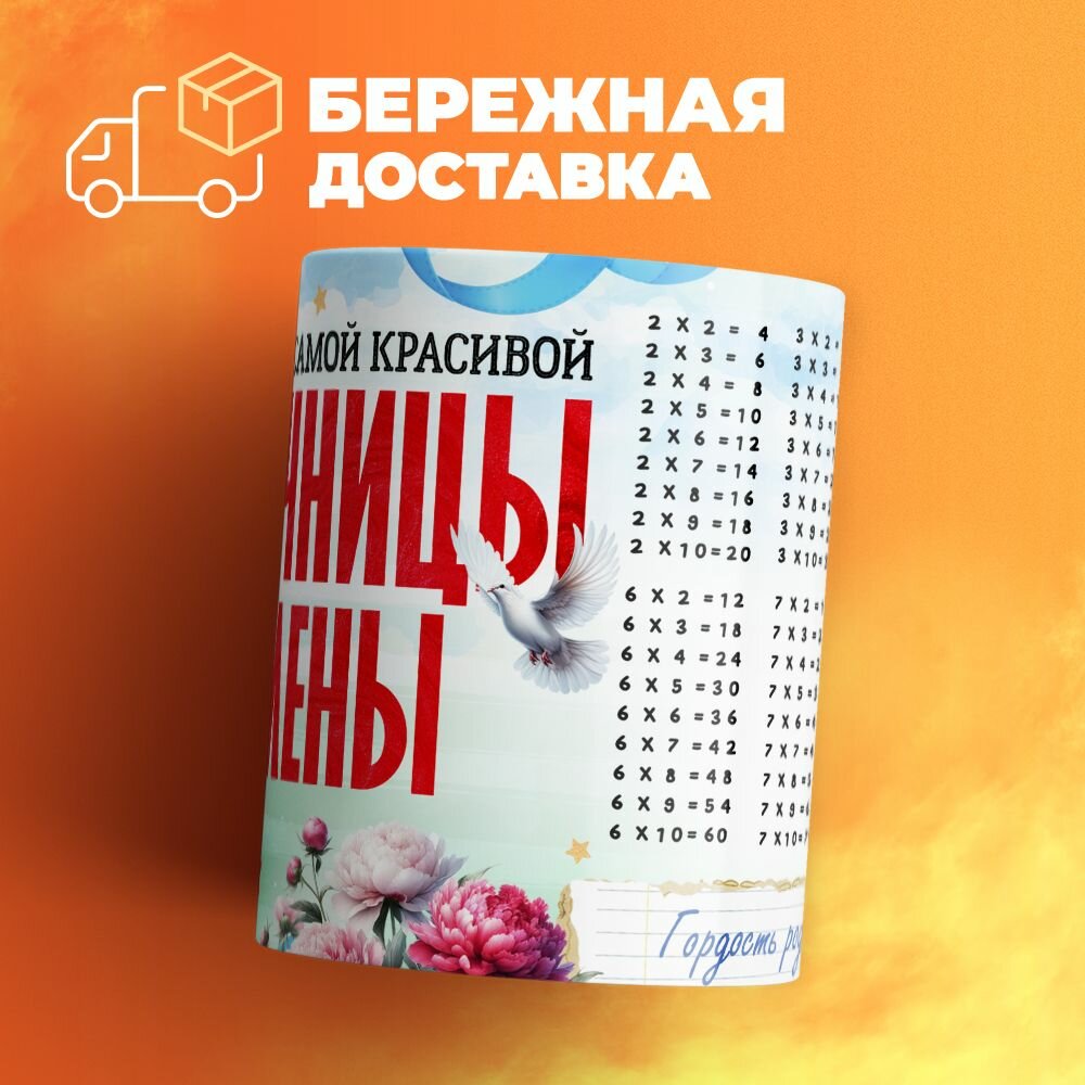 Кружка, "Самой красивой отличницы Мадины", на день рождения дочки, в подарок для девочки, внучки с таблицей умножения 330 мл 535 ₽