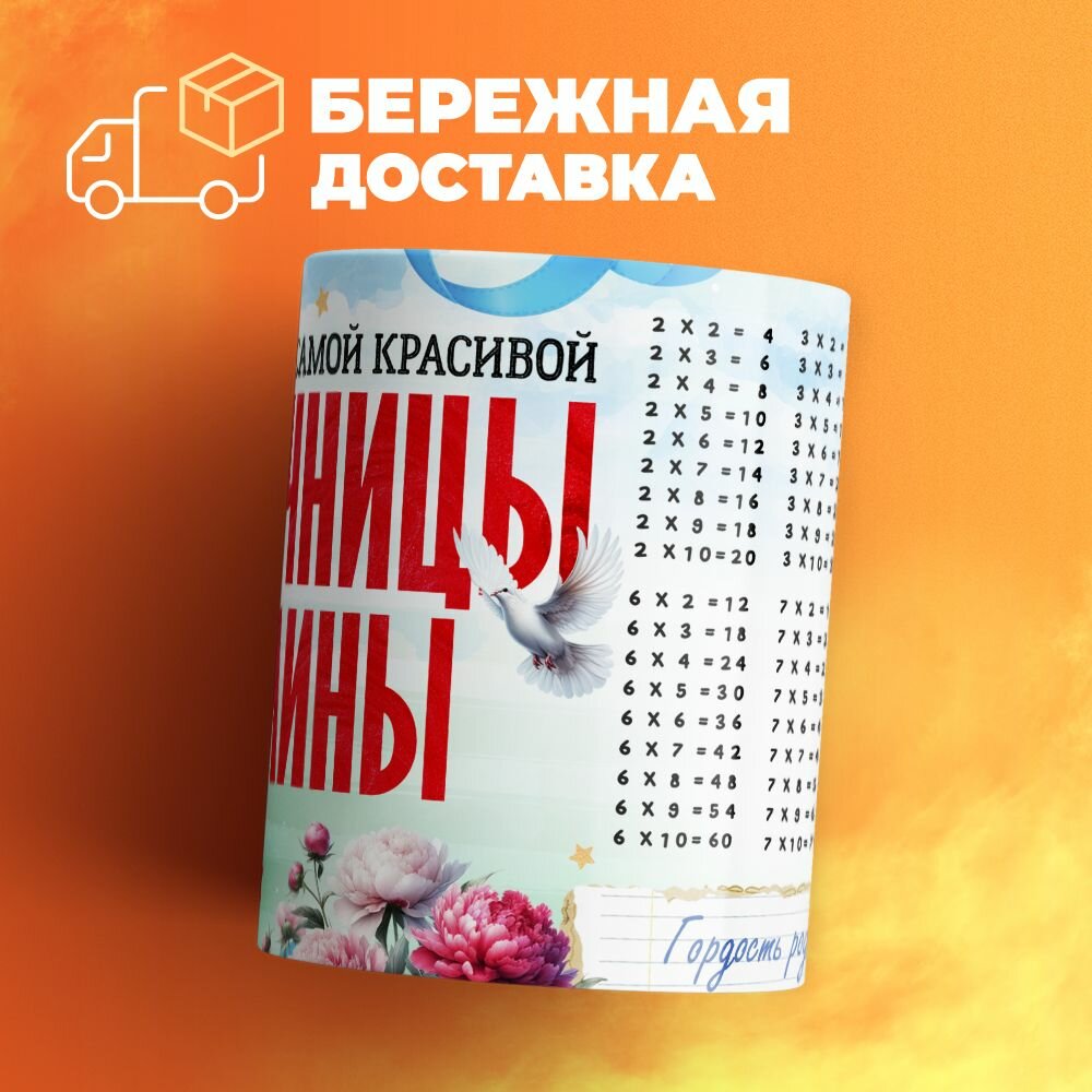 Кружка, "Самой красивой отличницы Мадины", на день рождения дочки, в подарок для девочки, внучки с таблицей умножения 330 мл 535 ₽