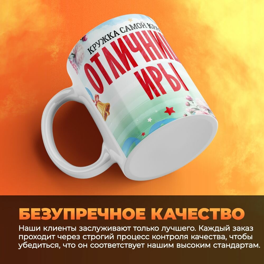 Кружка, "Самой красивой отличницы Иры", на день рождения дочки, в подарок для девочки, внучки с таблицей умножения 330 мл информация: