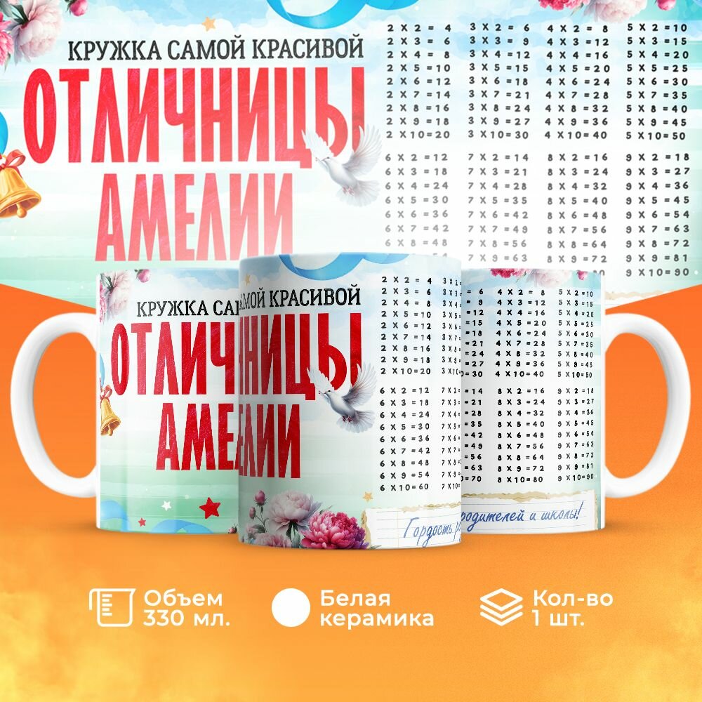10 цен на Кружка, "Самой красивой отличницы Амелии", на день рождения дочки, в подарок для девочки, внучки с таблицей умножения 330 мл