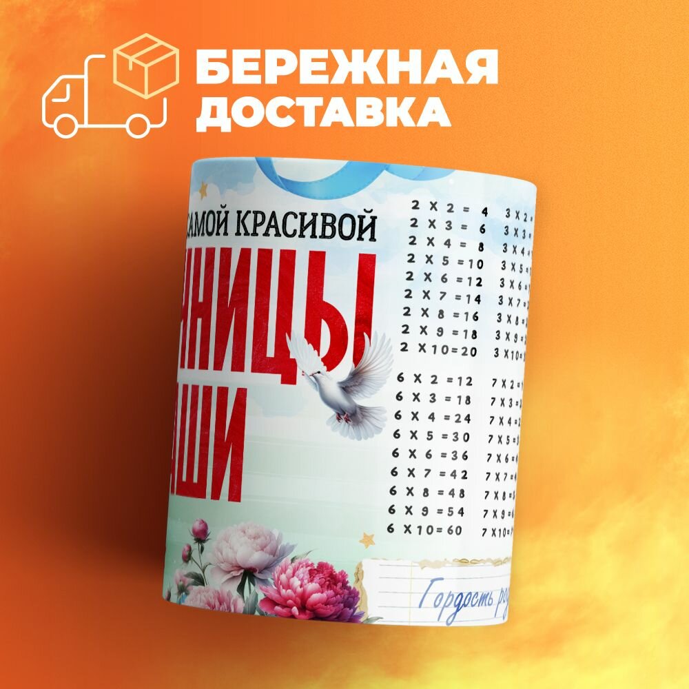 Кружка, "Самой красивой отличницы ", на день рождения дочки, в подарок для девочки, внучки с таблицей умножения 330 мл 535 ₽