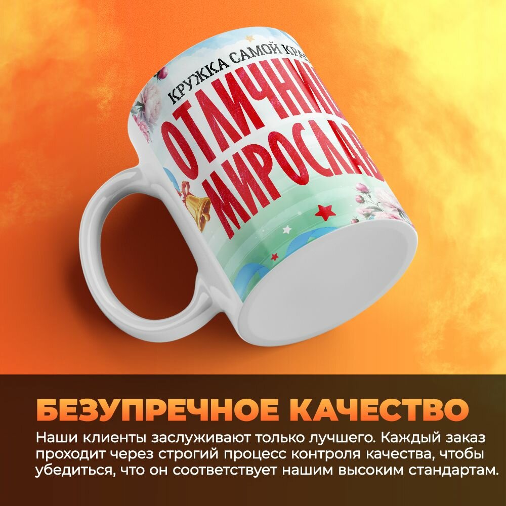 10 цен на Кружка, "Самой красивой отличницы Мирославы", на день рождения дочки, в подарок для девочки, внучки с таблицей умножения 330 мл