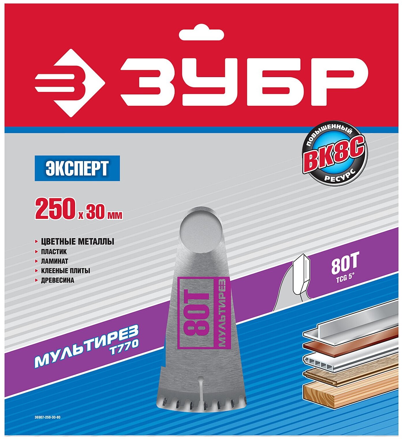 10 цен на ЗУБР Мультирез 250 x 30мм 80Т, диск пильный по алюминию, 36907-250-30-80, серия Профессионал