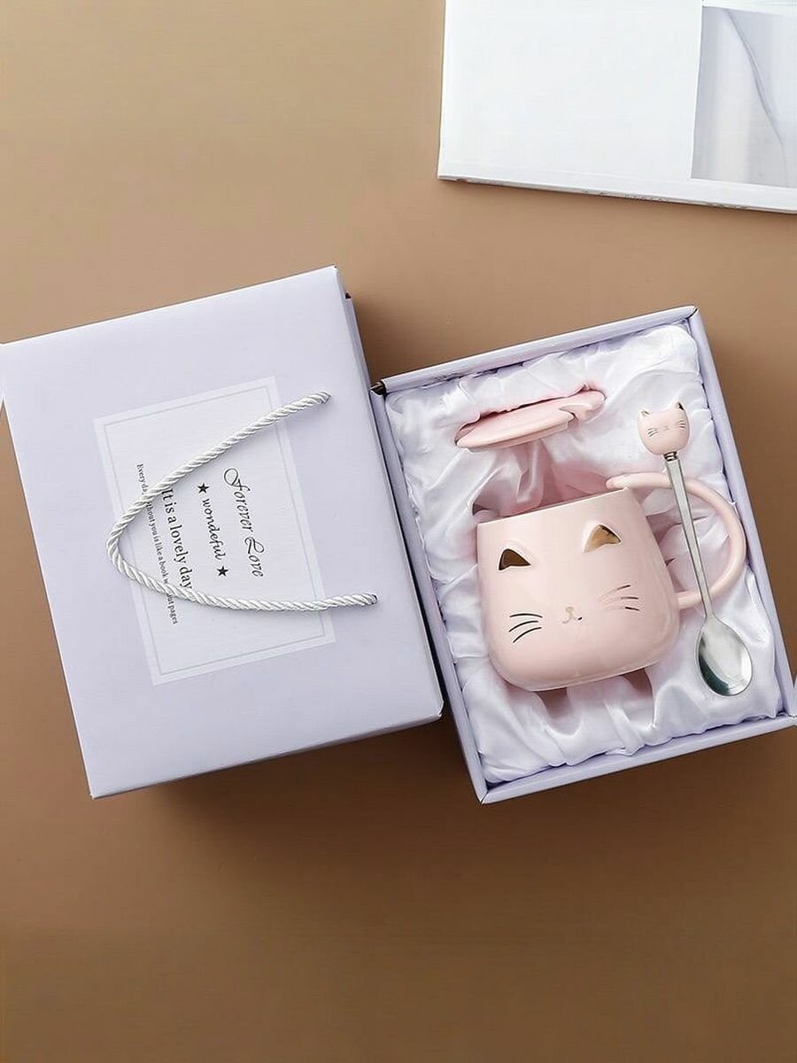 10 цен на Кружка заварочная, в подарок, 370 мл, котик с крышкой и ложкой, в коробке