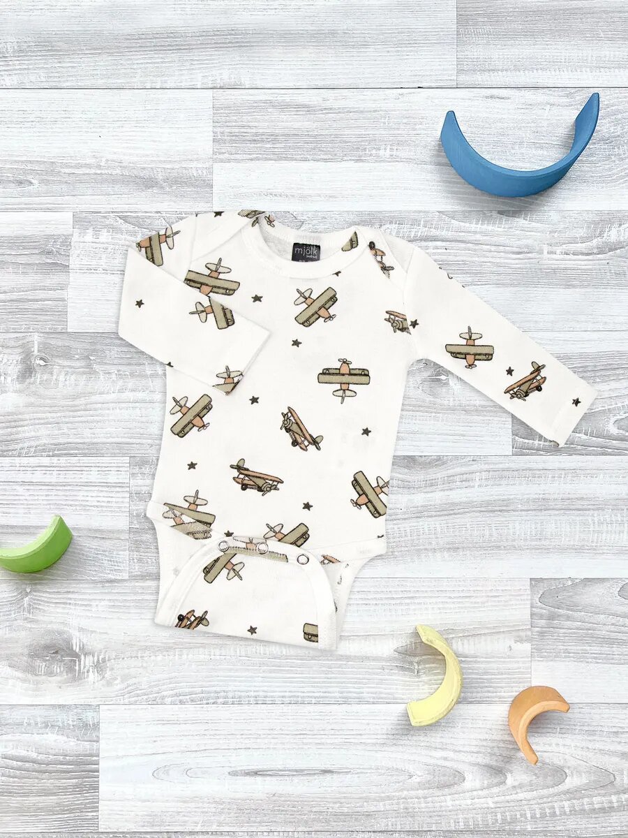 Боди Mjolk, размер 80, белый, коричневый, зеленый 1 048 ₽